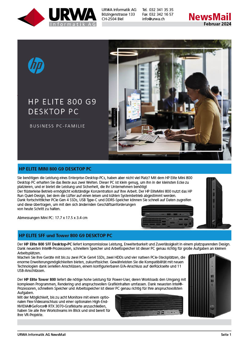 URWA Informatik AG Bözingenstrasse 133 CH-2504 Biel Tel 032 341 35 35 Fax 032 342 16 57 Mail info@urwa.ch |